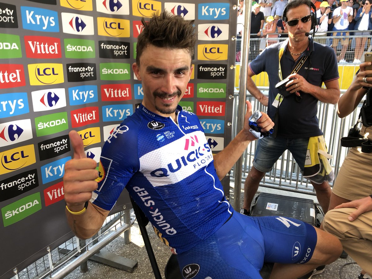 Julian Alaphilippe: «Conseguir una victoria de etapa en el Tour de Francia era un sueño para mí. Todo se mezcla en mi cabeza, son muchas emociones: el trabajo para llegar hasta aquí, mi familia, mi padre que está enfermo y me ve desde casa… Estoy muy contento por él, por ellos. Sabía que esta etapa me venía bien. Estaba un poco nervioso al principio porque no lograba que se hiciera la fuga. Al final, lo he dado todo. He sabido gestionar mi energía después de una primera semana en la que no tuve piernas para estar donde deseaba y estoy contento de haberlo dado todo para conseguir esta bonita victoria”.