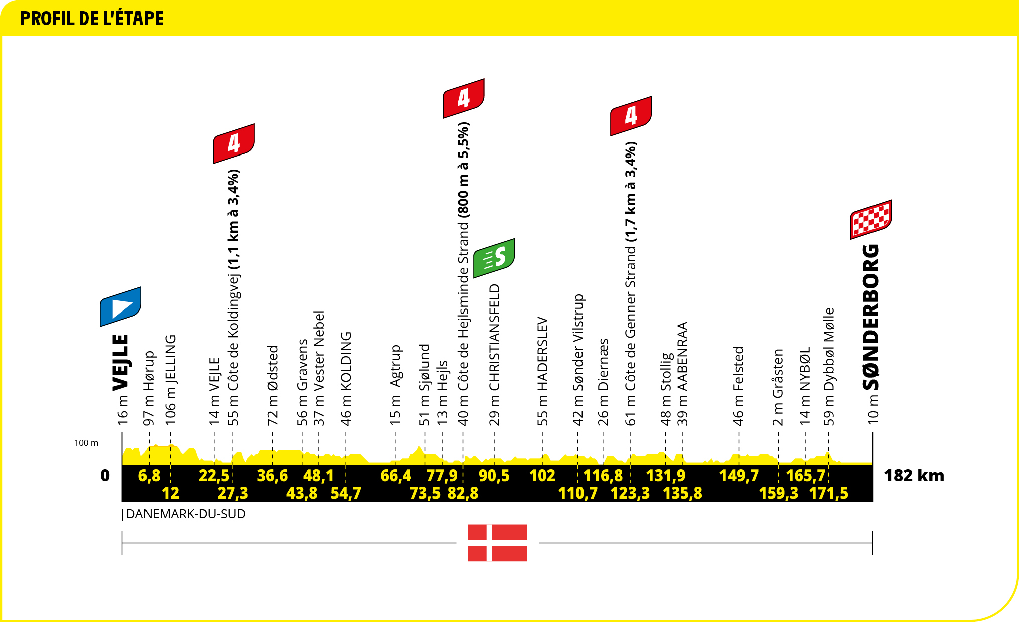 Las tres primeras etapas del recorrido del Tour de Francia de 2022 tendrán lugar en Dinamarca, después de que Bretaña tomara el relevo como Grand Départ en 2021 debido a la retirada de este país por la situación sanitaria. En el país nórdico los más combativos contra el viento podrán brillar con luz propia al cruzar el mar Báltico durante 18 kilómetros, con un menú compuesto por una contrarreloj para rodadores en Copenhague, la capital mundial de la bicicleta, y una etapa para velocistas que pondrá el broche final a la aventura norteña en Sønderborg.