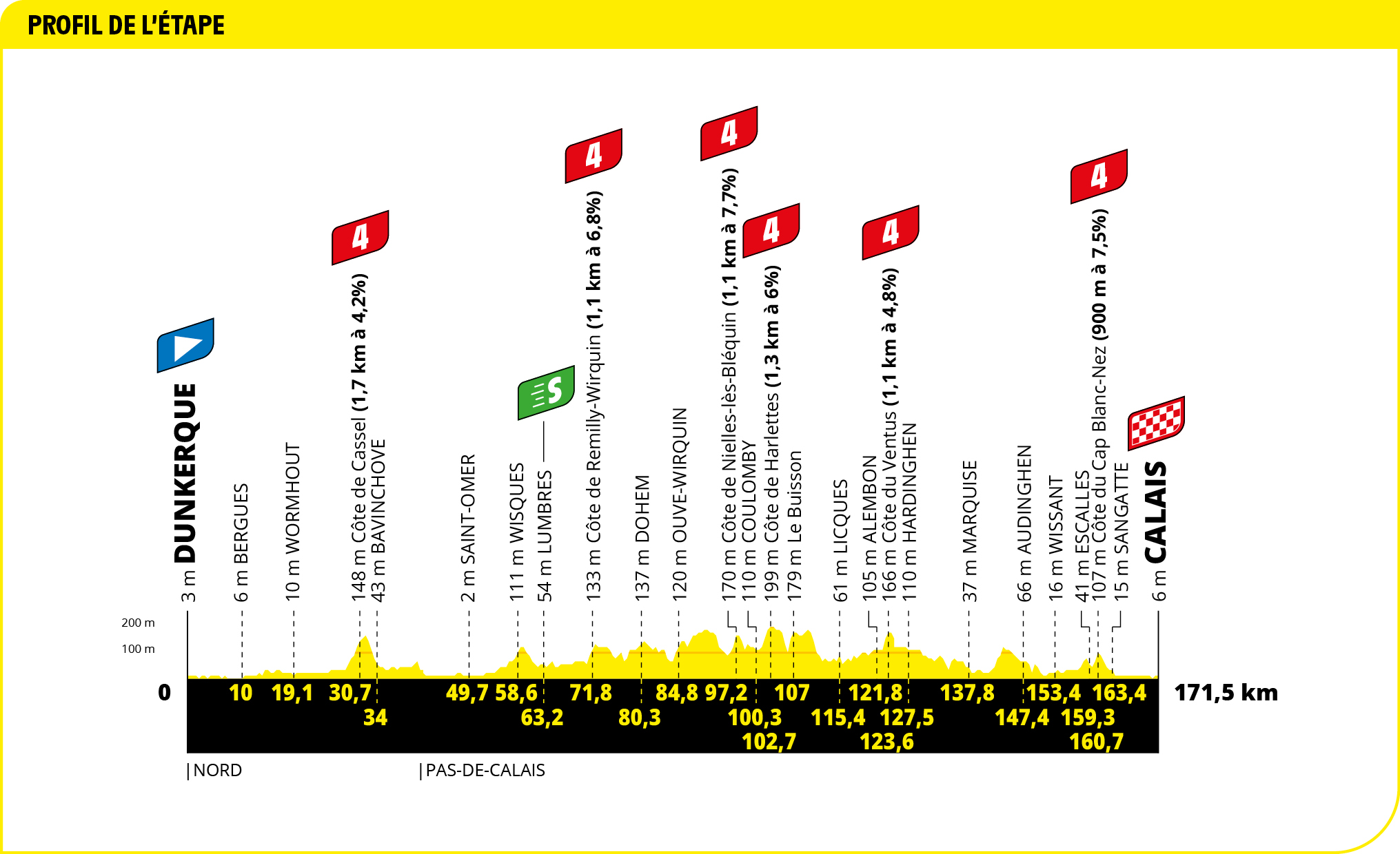 En la región del Norte, pero ya en la región gala, el pelotón se reencontrará con el sol de Francia: en el programa, una jornada rompepiernas hacia Calais, una ración de adoquines en Roubaix, una perita en dulce para los atacantes en Longwy y un primer asalto para los aspirantes al título en La Planche des Belles Filles, en su versión «Súper». Si las condiciones meteorológicas no deciden la carrera por eliminación, el Tour de 2022 ofrecerá una etapa de prestigio a los escaladores que aspiren a la victoria final.