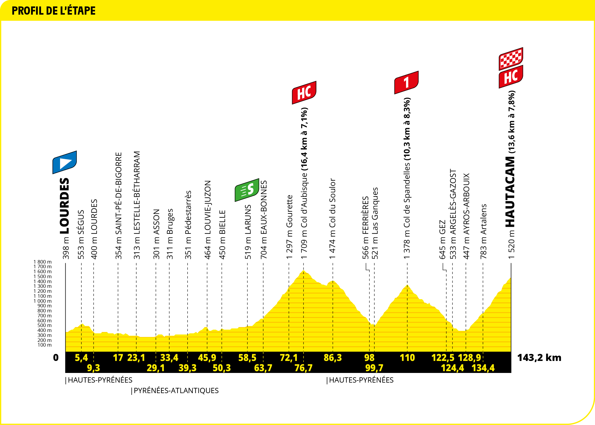 El defensor del título, vista o no de amarillo, deberá lidiar también con las ambiciones de sus rivales en la carretera de Hautacam, con subidas previas al Aubisque y la inédita del Col de Spandelles que no darán tregua a nadie. La última novedad del recorrido será la contrarreloj final de 40 kilómetros con meta en el promontorio de Rocamadour. Será la hora de hacer cuentas… y de homenajear 24 horas más tarde a un vencedor en los Campos Elíseos. A partir de ahí, le tocará hacer historia al pelotón femenino.