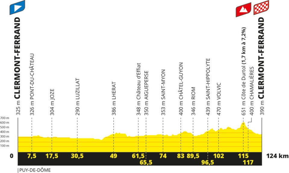 1ª: Domingo 23 julio. Clermont-Ferrand – Clermont-Ferrand (124 km)
