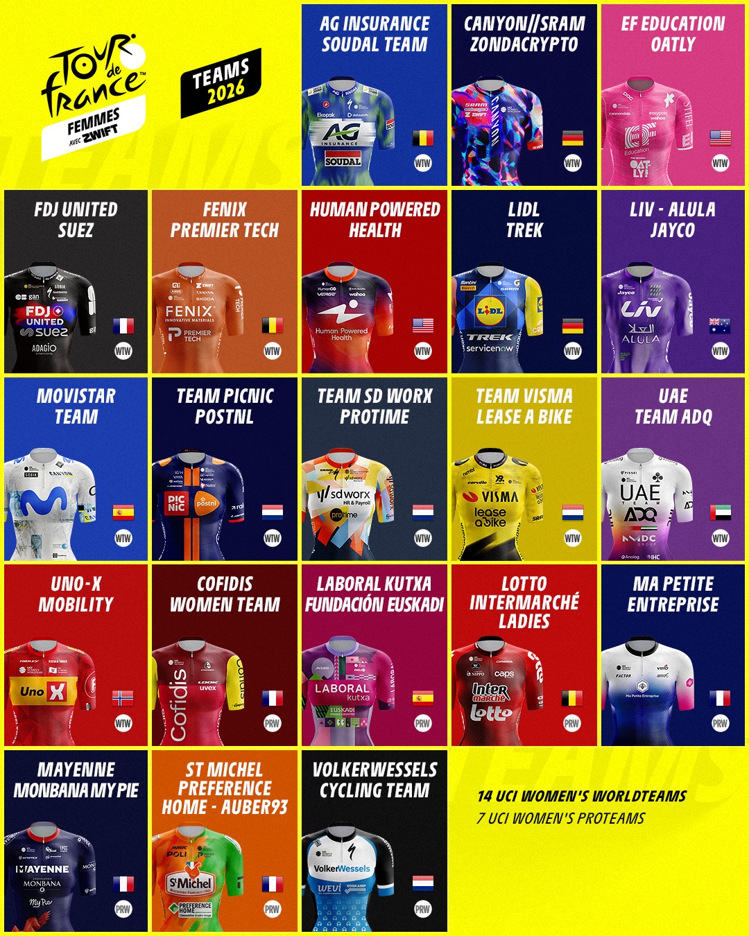 Conjuntos que asistirán a la prueba © Tour Francia féminas