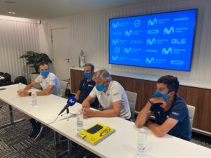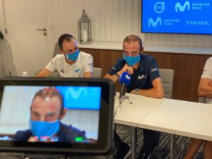 Últimas horas previas al arranque del Tour de Francia 2020 en Niza para un Movistar que ha completado, con la tradicional rueda de prensa, en formato telemático, ante los medios que siguen desde la obligada distancia al conjunto telefónico, los actos previos a la salida de la ‘Grande Boucle’, del sábado.