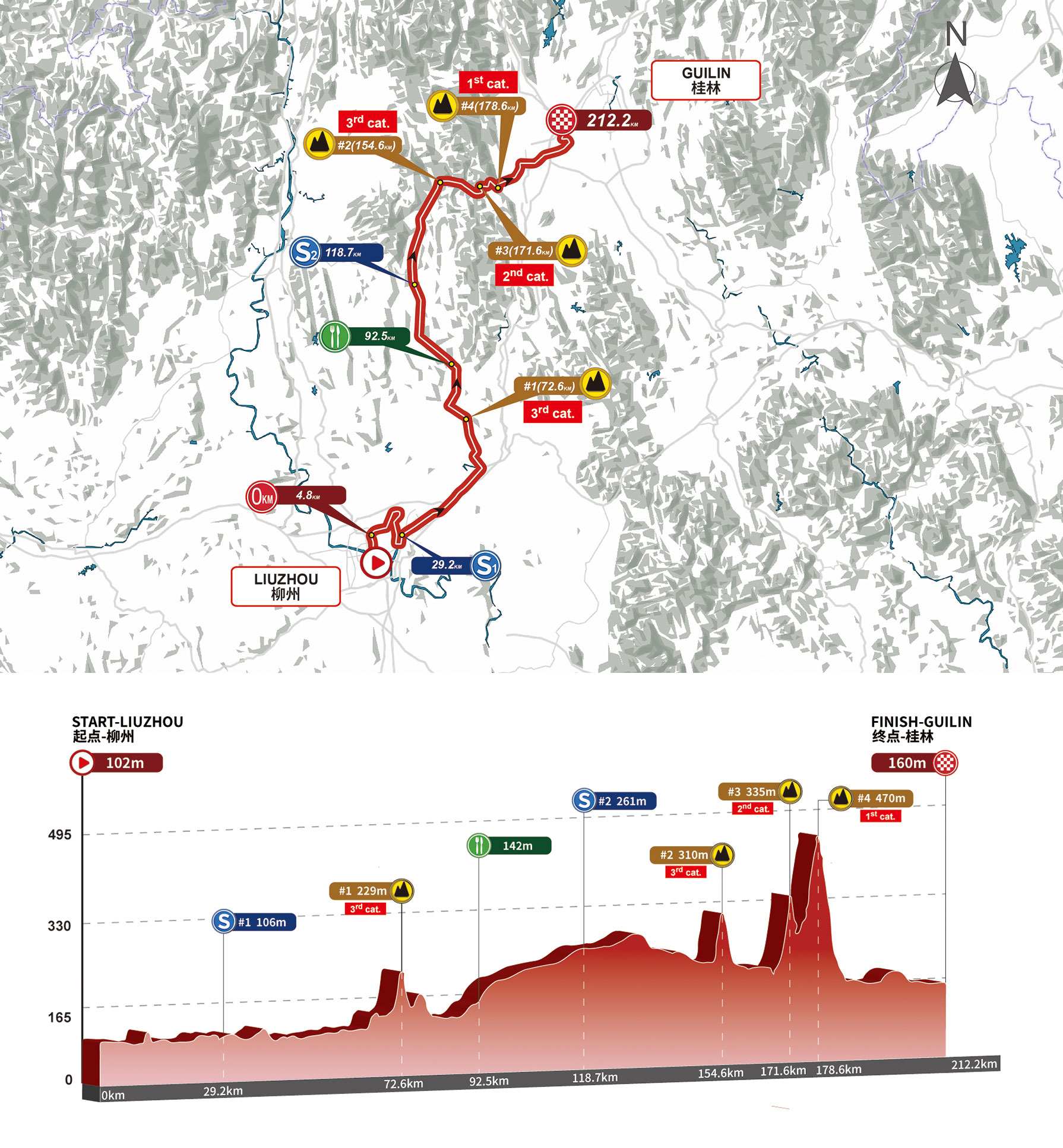 5ª etapa: Sábado 20 octubre. Liuzhou-Guilin, 212,2 km.