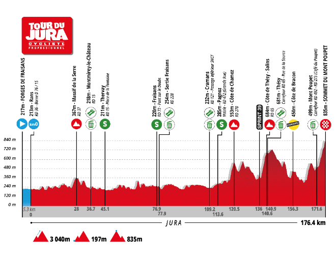 La vigésima edición del Tour de Jura de categoría UCI 1.1 tendrá lugar el sábado 19 de abril. En el programa: 176,4 kilómetros entre Fraisans y Le Mont Poupet, donde ha terminado los dos últimos años.