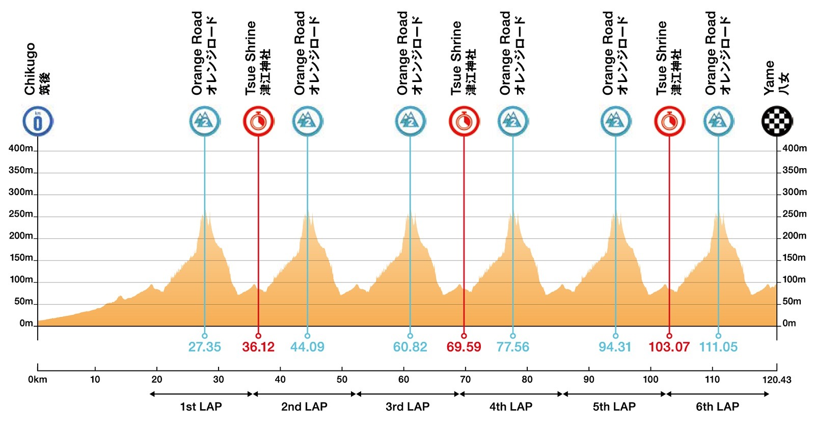 1ª: Sábado 11 octubre. Chikugo (4:05)-Yame (6:4), 120,4 km