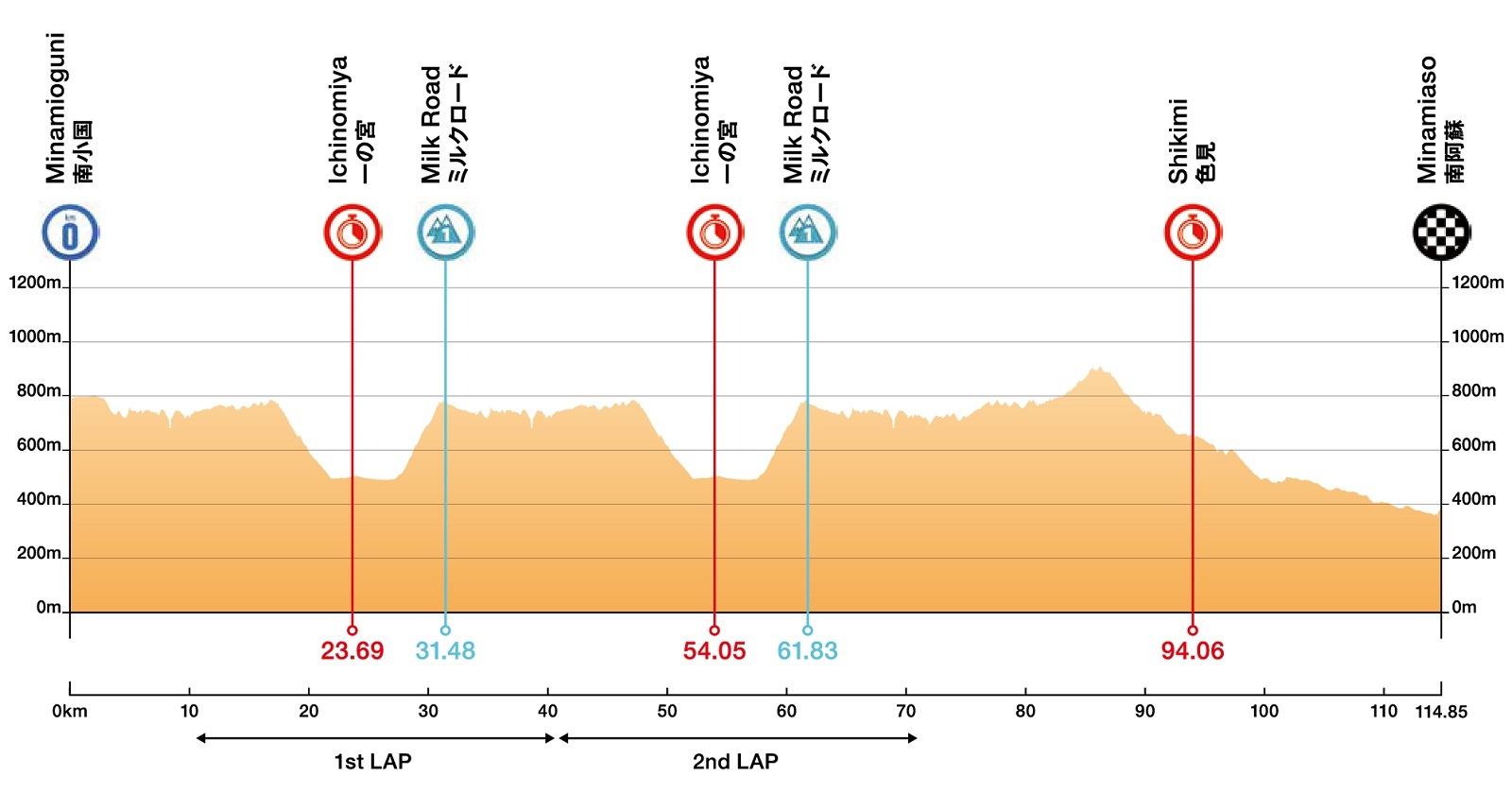 2ª: Domingo 12 octubre. Minamioguni (2:07) – Minamiaso (4:40), 114,8 km