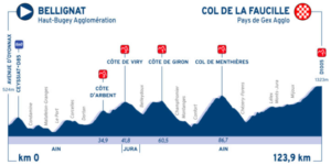 En la primera etapa, el pelotón cabalgó desde Bourg-en-Bresse a Saint-Vulbas, una etapa de más de 162,6 kilómetros con solo dos subidas en la primera mitad de la carrera. Tres corredores protagonizarían la primera etapa:: Gleb Brussenskiy, Simon Pellaud y Tim Naberman habían abandonado el pelotón después de tan solo diez kilómetros para emprender la escapada del día.