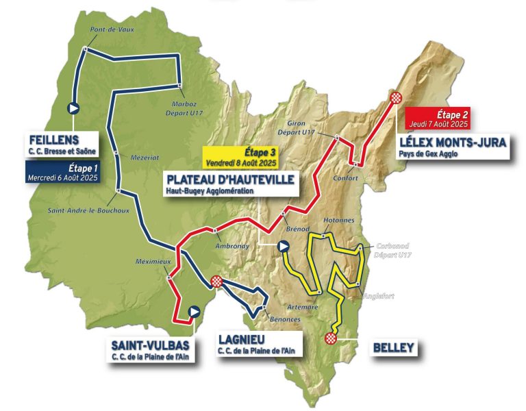 La 37ª edición del Tour de l’Ain tendrá lugar entre los días 6 y 8 de agosto. El programa de la prueba 2.1 incluye tres etapas, aunque será el segundo día en el que se disputará la tradicional llegada a Lélex-Monts Jura, precedida por el Plateau de Hauteville, la Côte de Giron y el Col de Menthières. El punto culminante de la carrera de este año es el regreso del Grand Colombier en la última etapa, cinco años después de su última aparición.