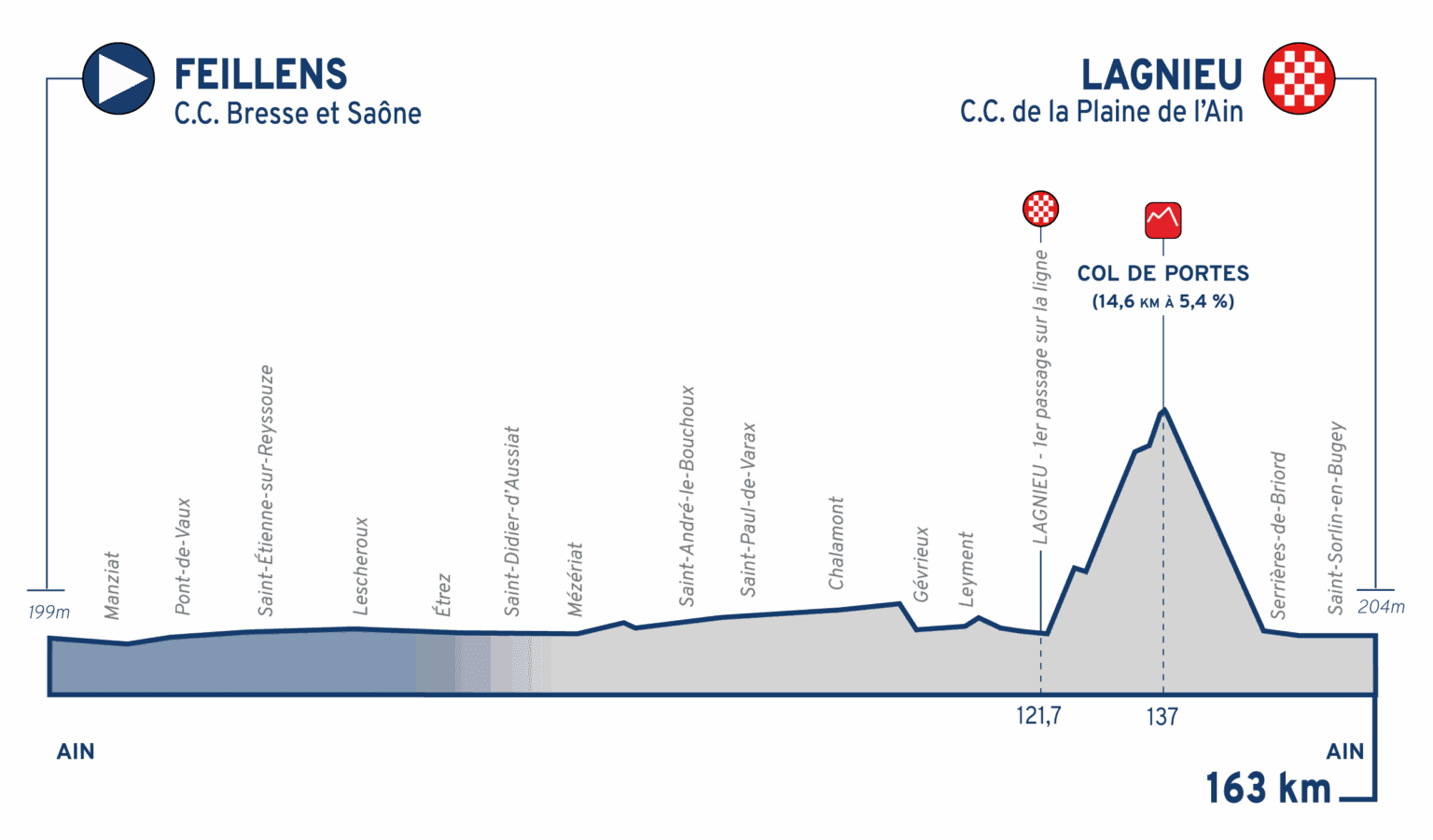 1ª: Miércoles 6 agosto. Feillens (14:30)-Lagnieu (17:35), 163 km
