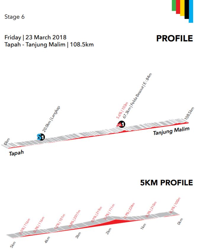La etapa reina en el Tour de Langkawi, de 169 kilómetros, se traducía en una jornada llana durante tres cuartas partes y perfil ascendente hasta el final en alto, sin rampas de dos dígitos. En cualquier caso, el primer ataque fue tempranero, lanzado por Van Zyl (Dimension Data). Resultó efímero, pero animó la carrera y poco después derivó en una fuga de más enjundia con Wackermann (Bardiani), Osorio (Manzana-Postobon), Rosa (Wilier), Zhang (Hengxiang), Zawawi (Sapura) y Jumari (Malaysia), que alcanzó los tres minutos de adelanto.