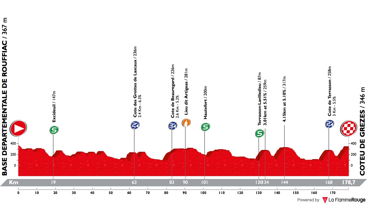 Varios ataques serios en los últimos dos kilómetros hicieron daño en el pelotón que perdió su organización en un terreno poco propicio para el lanzamiento lejano por el curveo y sinuosos repechos finales que hombres como Benedict Cosnefroy (AG2R La Mondiale) lanzaron su apuesta a apenas 800m de la línea de meta y que el pelotón lanzado no dió tregua. Los velocistas puros como Bryan Coquard (Vital Concept) tuvieron que dejar que los más potentes tomaran el protagonismo y fue Anthony Roux claramente el que aprovechó con mayor inteligencia sus fuerzas siendo además una victoria sin discusión. Por lo tanto, además de la etapa, el maillot de líder general reposará sobre sus espaldas en el inicio de la segunda etapa.