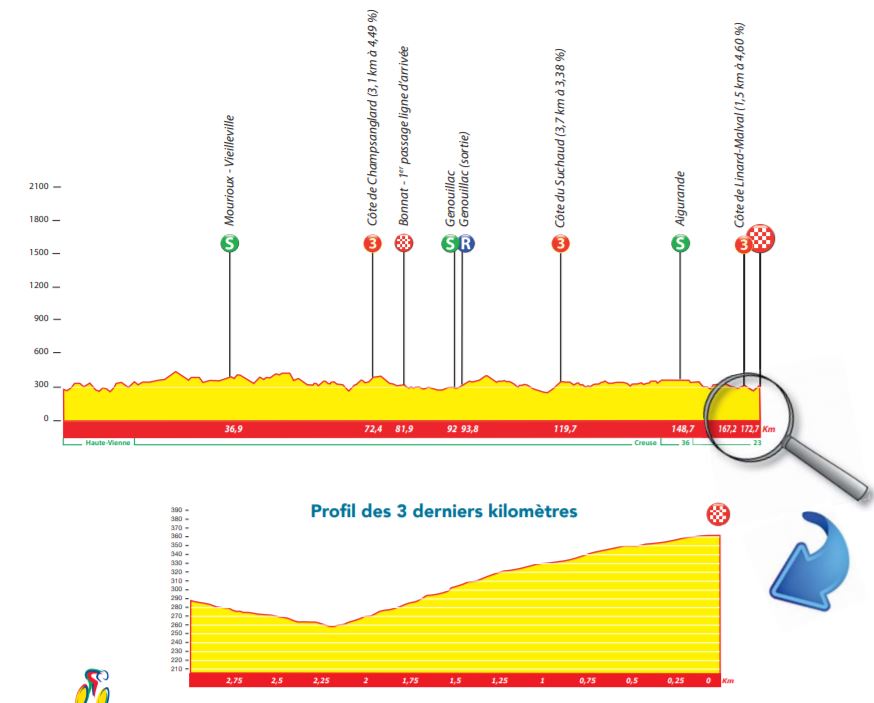 Etapa 1. Miércoles 15 de agosto: Saint-Just-le-Martel-Bonnat, 172,7 km.