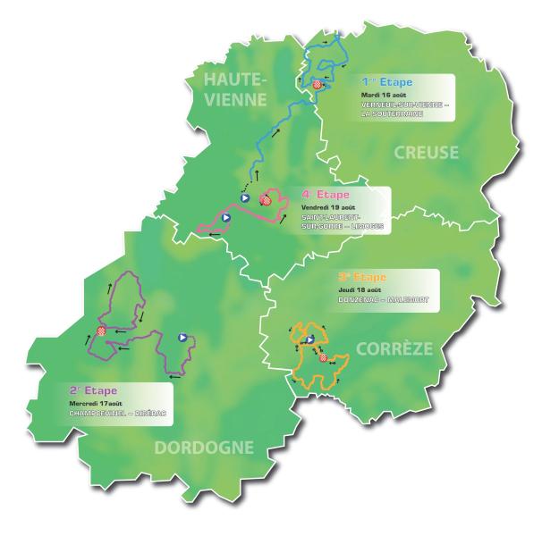 La primera etapa lanzará las hostilidades entre los principales líderes con un final en Creuse, pasando por Crozant y la côte de la Cazine en La Souterraine. Las carreteras accidentadas del Périgord en la segunda jornada, la más larga de este Tour con 184,7 kilómetros, podrían permitir a los corredores más fuertes consolidar su posición en la clasificación general. El tercer parcial será el más exigente de la carrera gala, con un recorrido accidentado y numerosas subidas. La cuarta etapa podría ser la oportunidad más favorable a los velocistas.