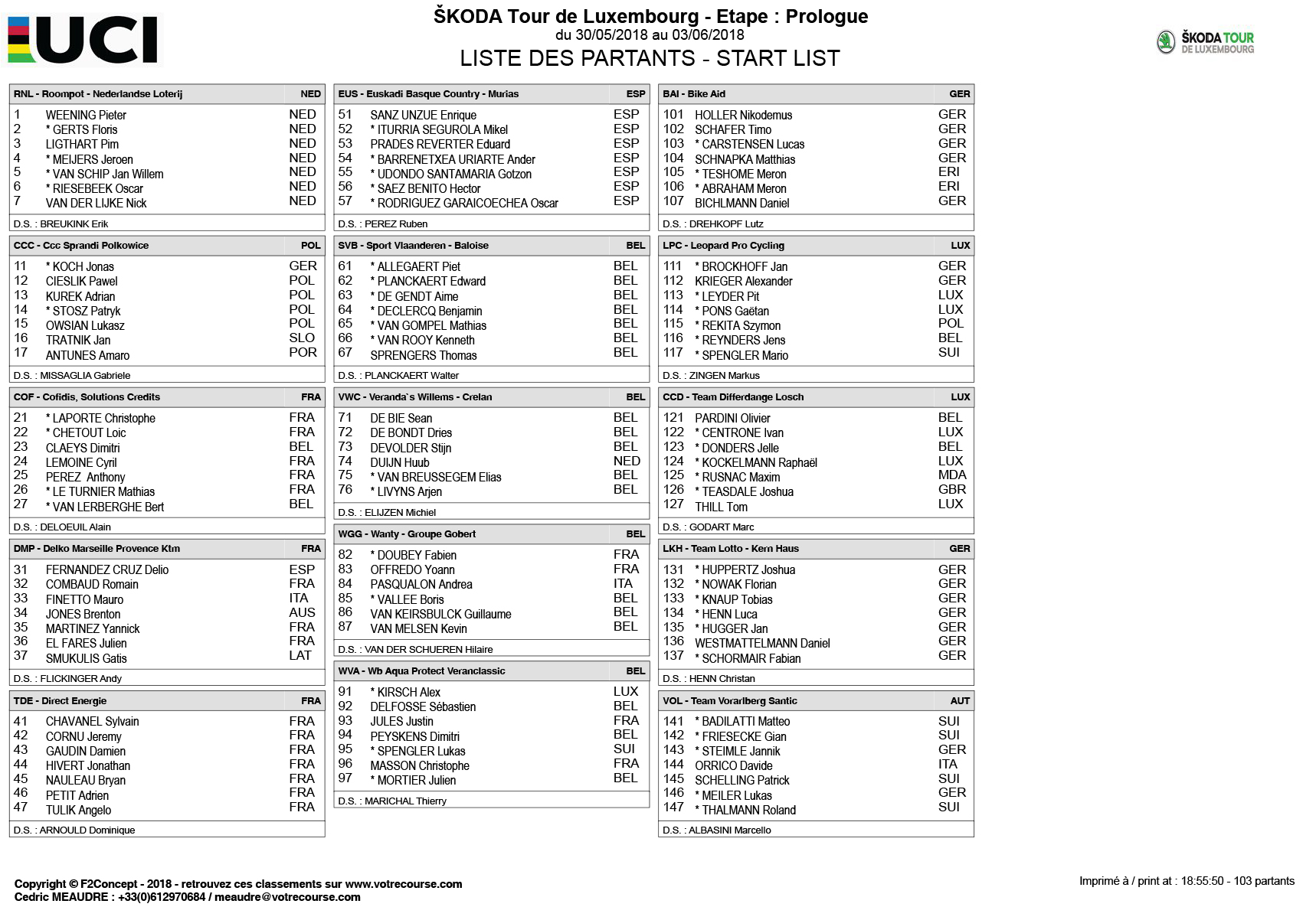 Jueves 31 de mayo. 1ª etapa: Luxemburgo – Hesperange | 186,7 kms