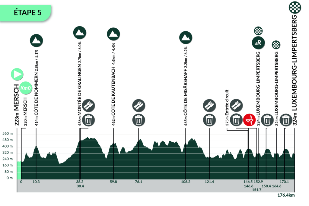 5ª: Domingo 21 septiembre. Mersch (10:33)-Luxemburgo (14:30), 176,4 km