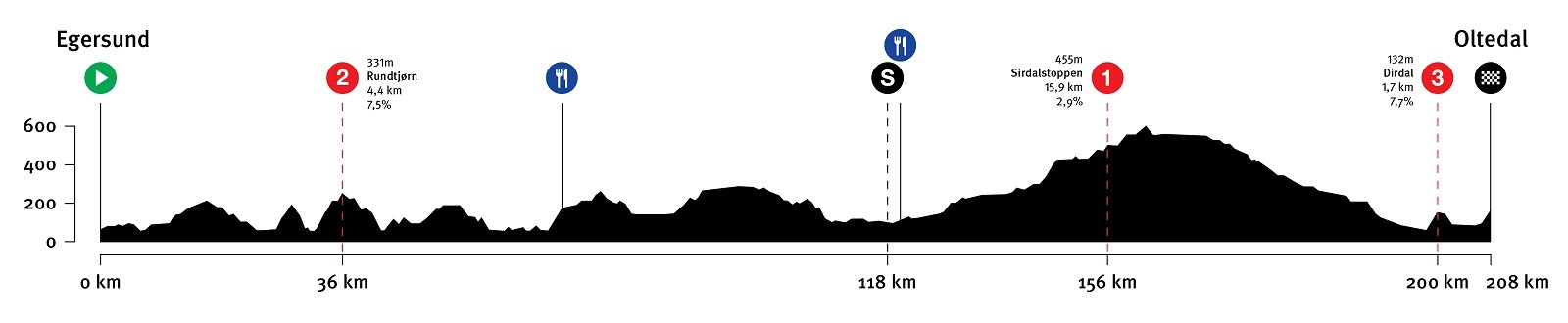 2ª: Viernes 30 mayo. Egersund (12:45)-Oltedal (17:55), 211,8 km