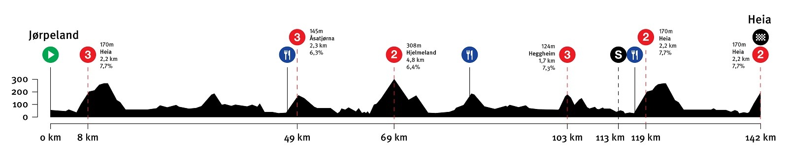 3ª: Sábado 31 mayo. Jørpeland (14:45)-Heia (17:55), 143,5 km