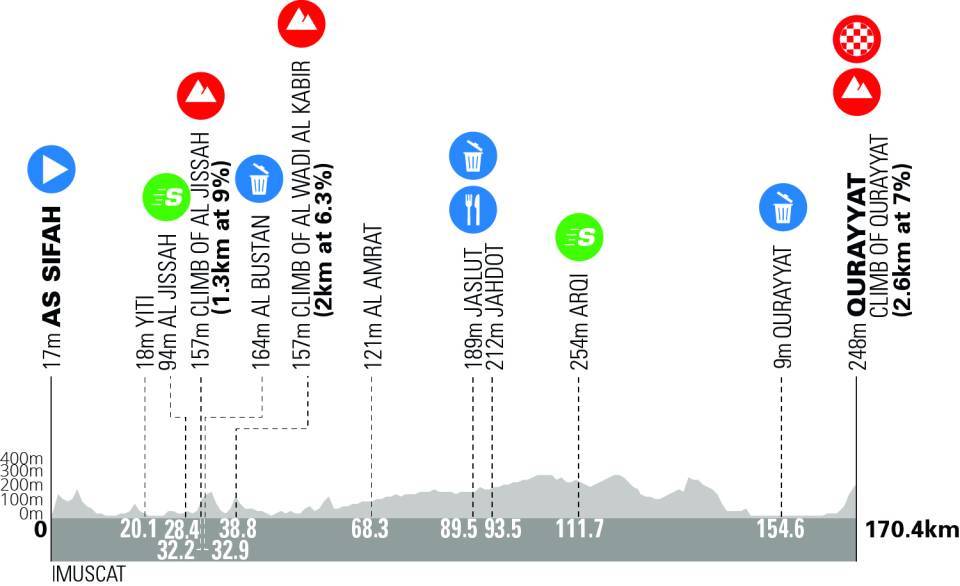 2ª: Domingo 11 febrero. As Sifah (8:15)-Qurayyat (12:30), 170,4 kms