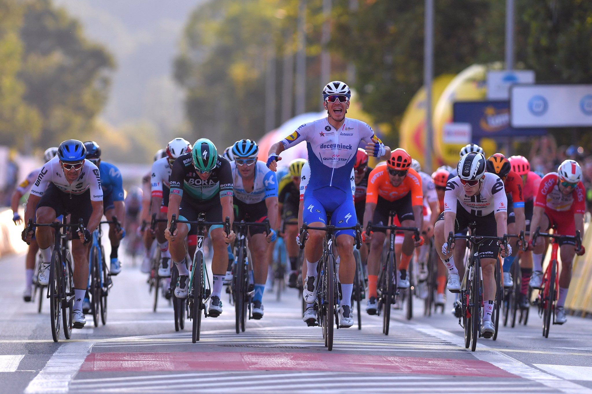 Ballerini. «El podio que subí en Zabrze me dio mucha confianza para hoy. Pensé todo el tiempo que Fabio nos motivó y nos mantuvimos enfocados mientras intentábamos acumular algunas victorias más para él. Me sentí bien hoy, esperé el momento adecuado para lanzarme y simplemente esprinté a 100 metros para el final. Es la manera perfecta de concluir lo que ha sido una semana muy emotiva para nosotros. Estoy feliz con mi primera victoria en el World Tour, pero aún más feliz con el grupo que vi aquí, esta gran familia llamada Deceuninck-Quick Step que se mantuvo unida en los momentos difíciles que enfrentamos».