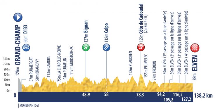 1ª etapa, viernes 17 de agosto. Grand-Champ-Elven, 138,2 km.