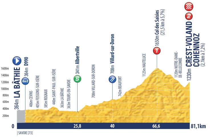 8ª etapa, viernes 24 de agosto. La Bathie-Crest-Voland Cohennoz, 81,1 km.