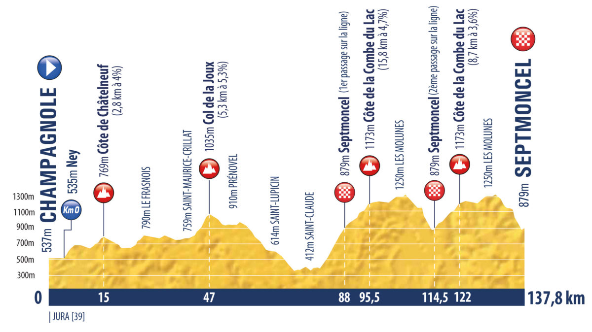 15/8 Etapa 2 (quebrada): Champagnole (Jura) – Septmoncel (Jura) 137,8 km