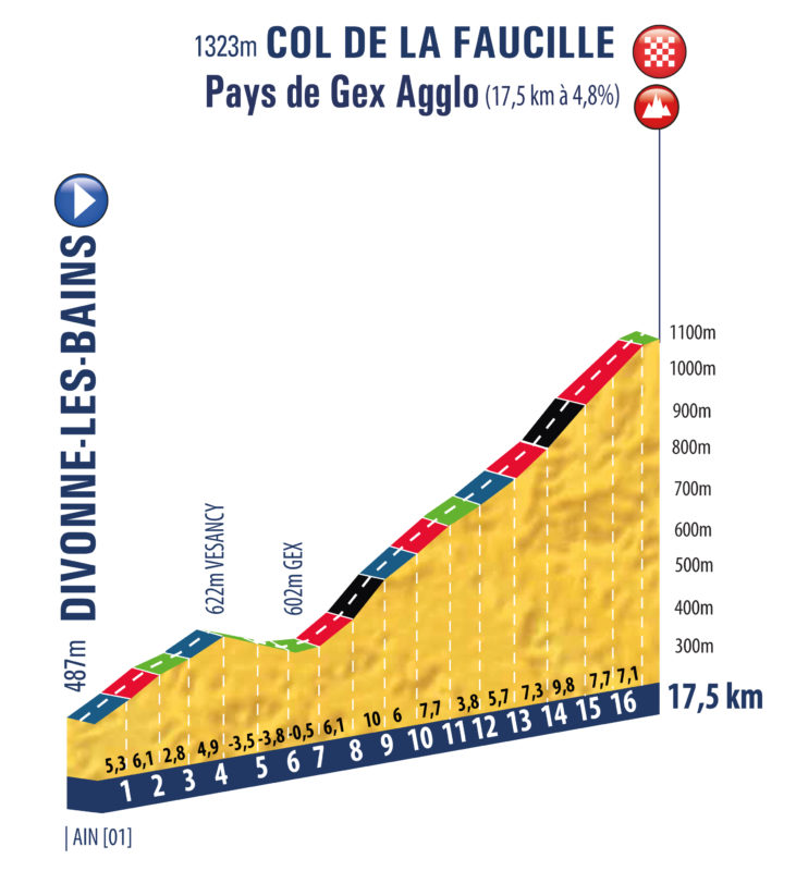 16/8 Etapa 3 (CRI): Divonne-les-Bains (Ain) – Col de la Faucille (Ain) 17,5 km