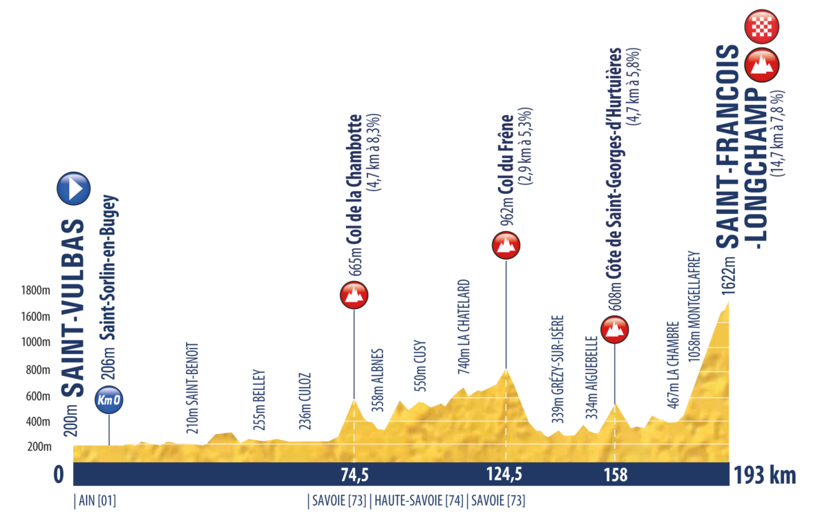 17/8 Etapa 4 (media montaña): Saint-Vulbas (Ain) – St-FrançoisLongchamp (Savoie) 193 km