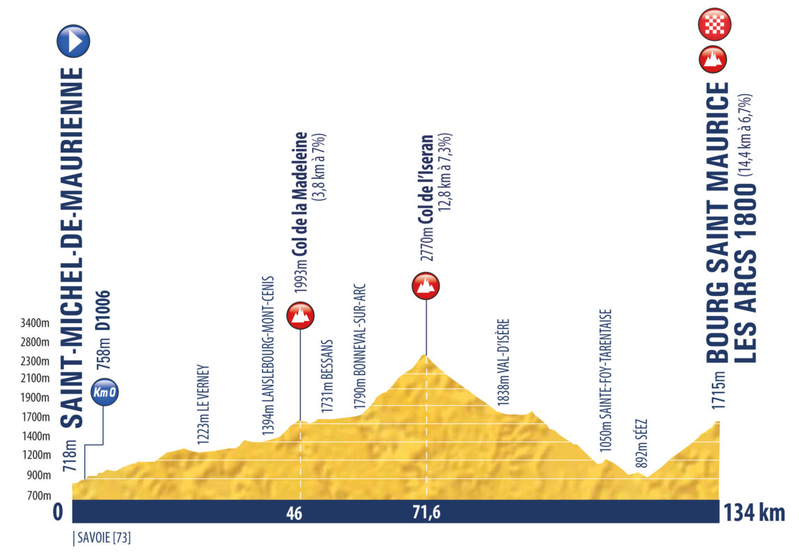 Este año, la ‘Gran Salida’ dará inicio el viernes 14 de agosto de 2020 desde Château-Thierry (Aisne). El itinerario proporciona ahora un primer enfoque montañoso en el Jura y un etapa cronometrada en el departamento de Ain, en las faldas del Col de la Faucille. La estancia alpina con la base tradicional en Saboya, presenta un programa ligeramente renovado sin modificar el perfil y con las grandes ascensiones al final de la etapa con Saint François Longchamp (4º) y La Toussuiere (5º). Para finalizar, Les Arcs (6ª) coronará al nuevo ganador después de dominar previamente las duras rampas del paso al Iseran. Sin duda la etapa reina de la edición 57ª edición de la carrera.