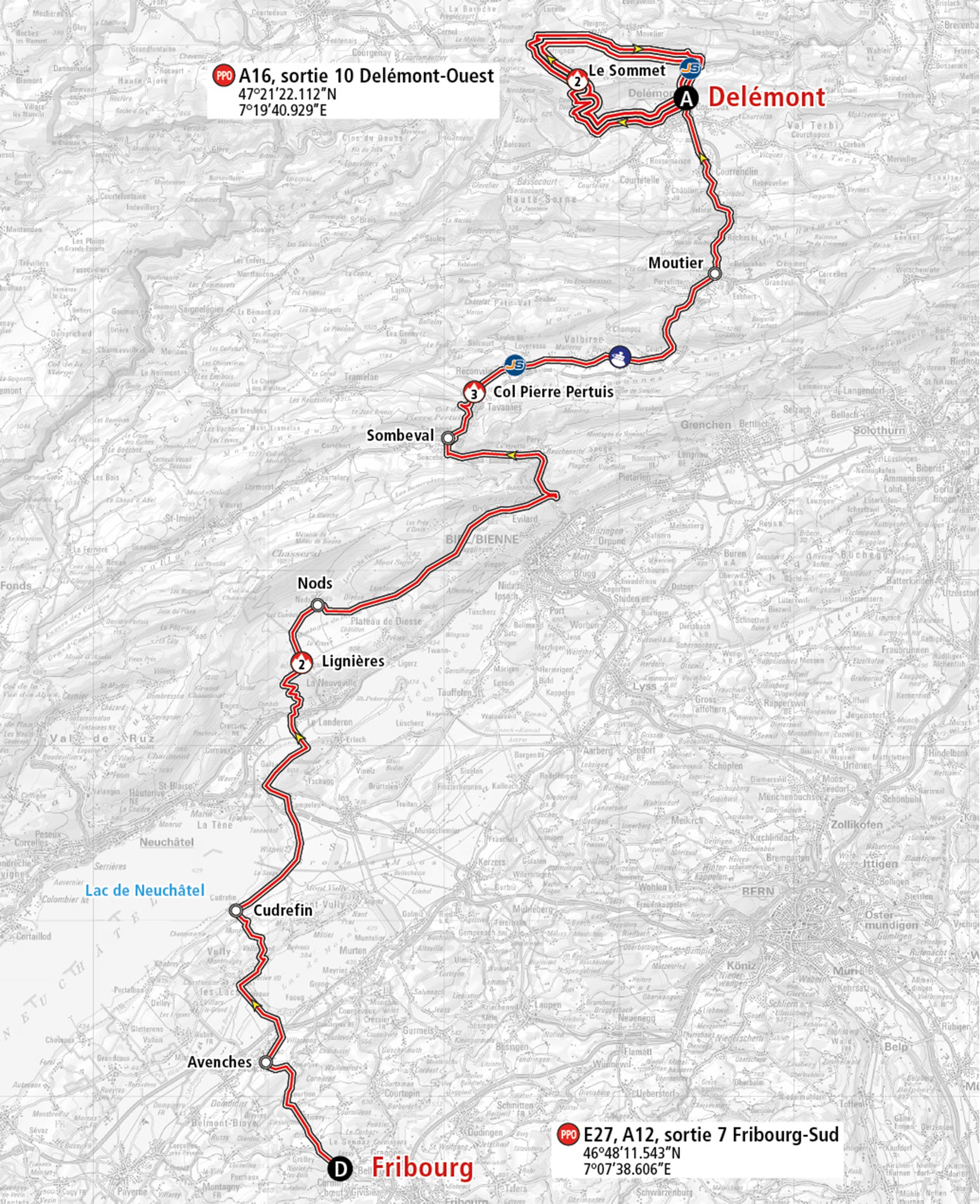 1ª etapa. Miércoles 25 de abril: Friburgo-Delémont, 166,6 kilómetros.