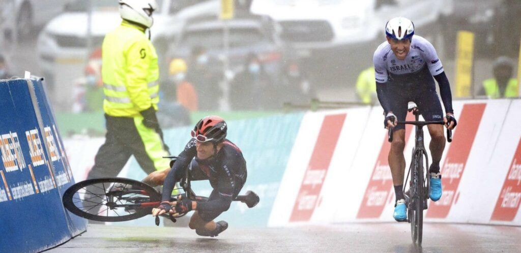 Cierto es que en la pelea final Woods, vencedor en la cima, daba la sensación de tener un punto de velocidad superior al británico, pero el corredor de Ineos-Grenadiers sufrió algún tipo de percance mecánico –la sensación inicial es que se la ha salido la cala del pedal– que provocó una fea caída de la que le costó mucho recuperarse, perdiendo finalmente 21 segundos respecto al vencedor de la etapa, nuevo líder y que ahora cuenta con once segundos de renta en la general.