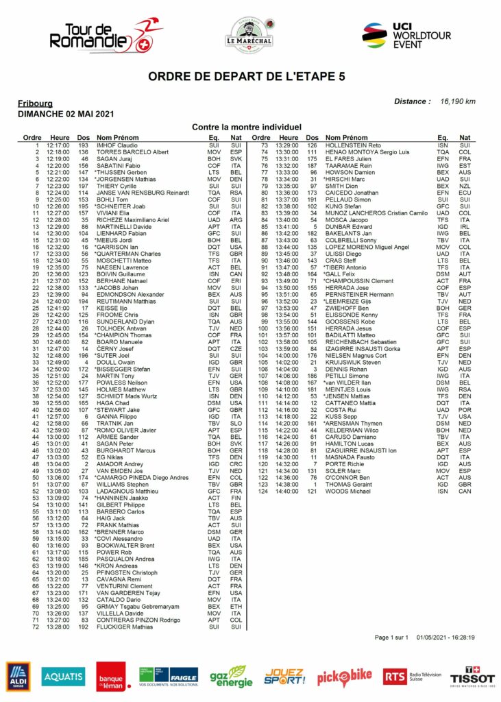 Nada más darse la salida se formó un grupo de siete unidades conformado por Josef Černy (Deceuninck-Quick Step), Mads Würtz Scmidt (Israel Start-Up Nation), Kobe Goossens, Matthew Holmes (Lotto-Soudal), Magnus Cort (EF-Nippo), Simone Petilli (Intermarché-Wanty-Gobert), Simon Pellaud (Suiza), que llegaron a contar con una renta máxima que rozó los siete minutos tras coronar el puerto de Lens, de tercera categoría y afrontar un largo tramo llano que desembocaría en las dos subidas finales a Suen (1ª categoría) y Thyon 2000, con sus 2.076 metros de altitud y punto final de una jornada con más de 4.000 metros de desnivel acumulado.