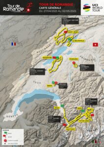 El Tour de Romandía de 2021 mantiene prácticamente su suspendido recorrido 2020 que presentó entonces una interesante propuesta. Y es que su primera etapa se disputará entre Aigle y Martigny, sobre el mismo trazado en el que se iba a disputar el Campeonato del Mundo el 27 de septiembre pasado y que finalmente acogió la localidad italiana de Imola tras la suspensión suiza.