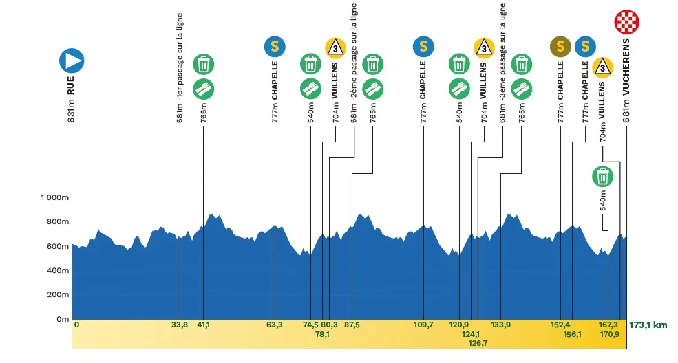 El Tour de Romandía celebrará su 79ª edición del 28 de abril al 3 de mayo, manteniendo el prólogo inaugural como punto de partida, pero sin incluir este año ninguna otra contrarreloj. El recorrido constará de 853,8 kilómetros y un exigente desnivel acumulado de 14.183 metros, con la etapa reina prevista para el sábado, entre Broc y Charmey, en el cantón de Friburgo. La llegada final estará ubicada en Leysin, mientras que Broc, Rue, Villars-sur-Glâne y Vucherens se estrenarán como sedes de la prueba WorldTour.
