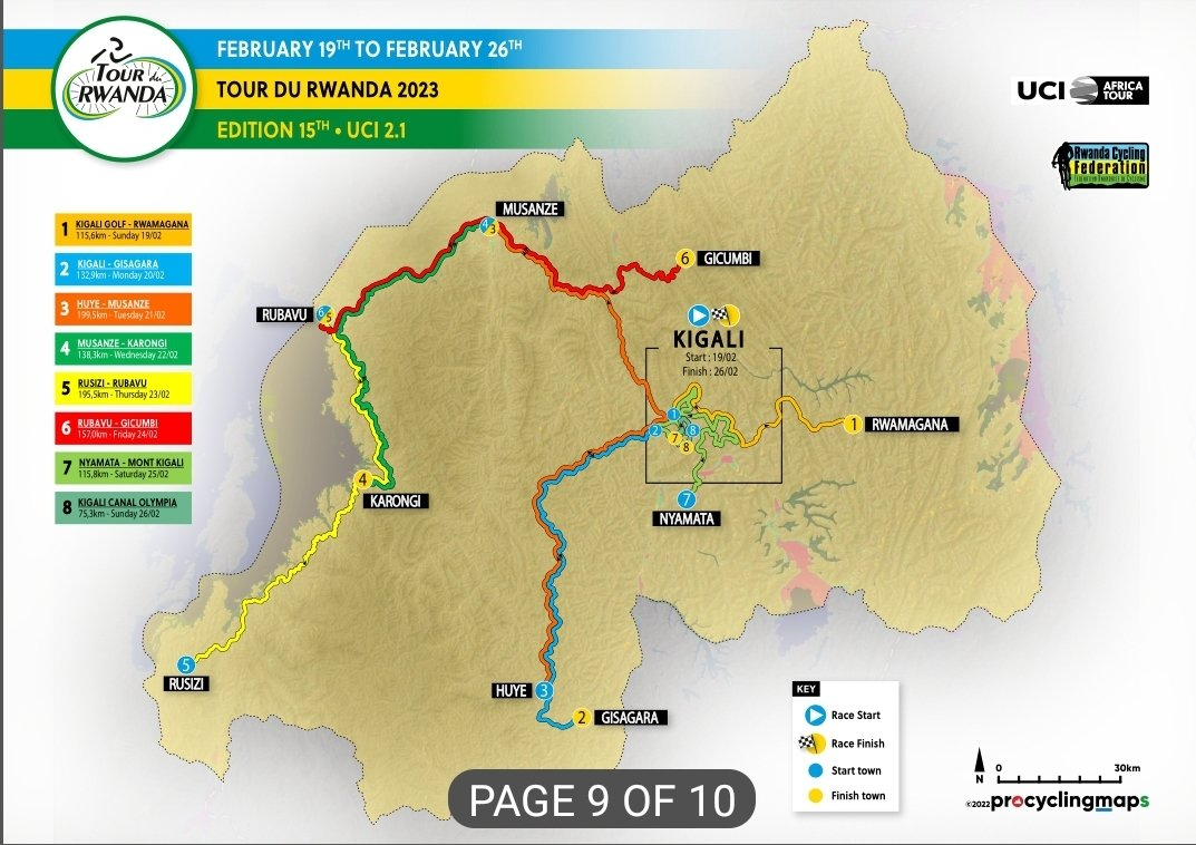 La 15ª edición del Tour de Ruanda (2.1) se celebrará desde el domingo 19 de febrero hasta el siguiente domingo 26 de febrero de 2023. La prueba estará compuesta por ocho etapas, siendo el comienzo y la llegada de la carrera en la l0calidad de Kigali. En la línea de salida estarán un total de 20 equipos entre los que destacan un único equipo del World Tour (Soudal-Quick Step) y seis escuadras de categoría Pro Team entre los que destaca la presencia del Euskaltel. El vigente campeón Natnael Tesfatsion no podrá luchar por defender su corona tras no estar inscrito en la carrera el equipo Trek.