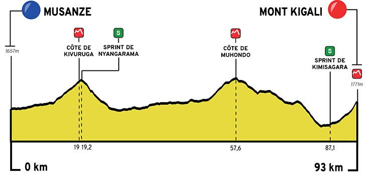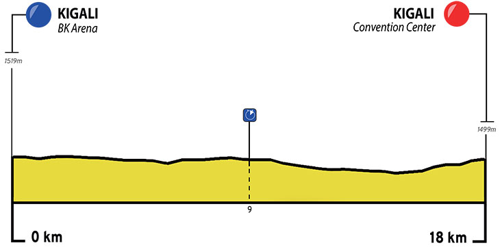 1ª: Domingo 18 febrero. Kigali (11:00)-Kigali (12:15), 18 kms contrarreloj equipos