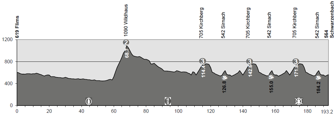 4ª: Martes 16 junio (13:10). Flims Laax Falera – Schwarzenbach SG, 193.2 kms