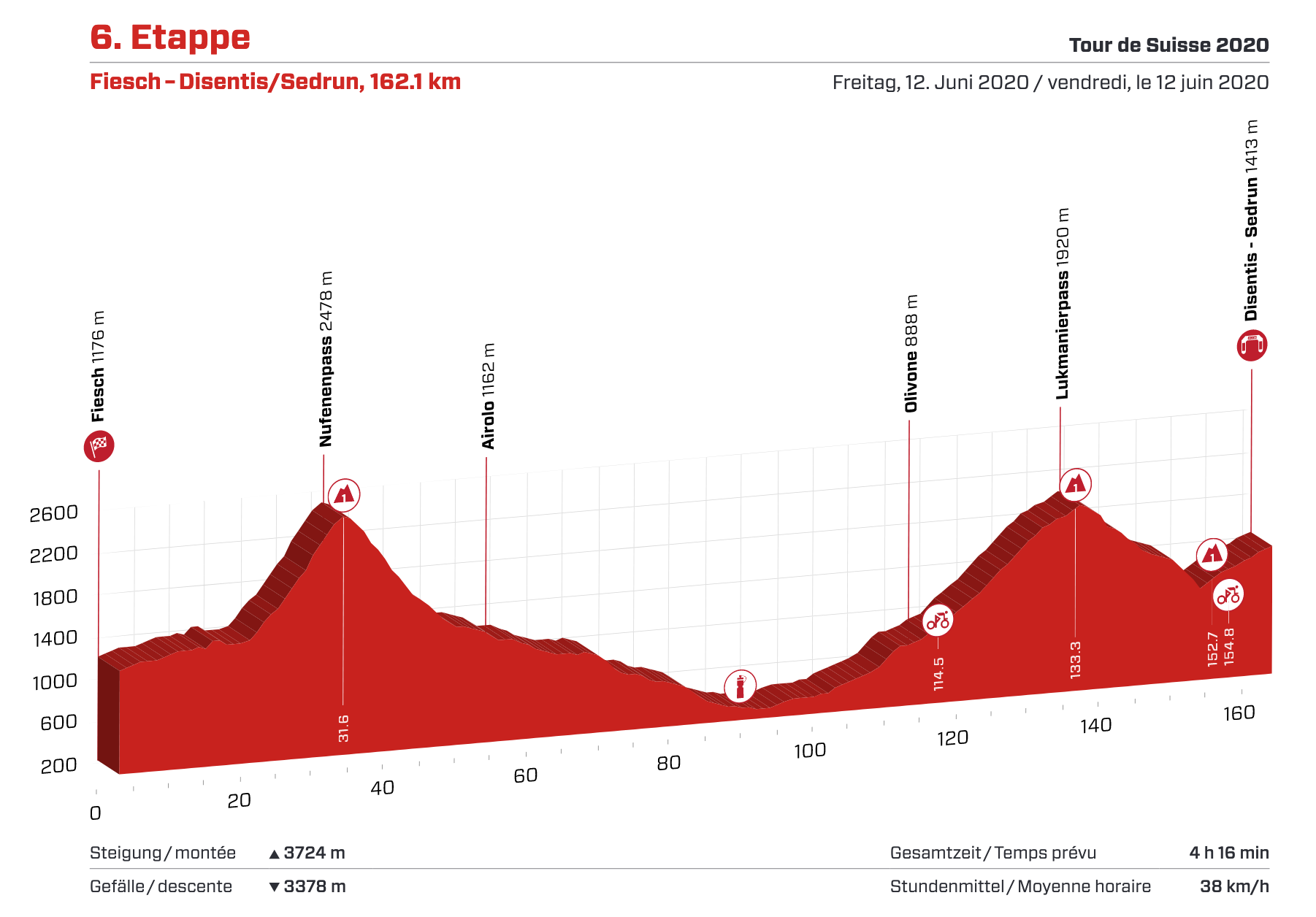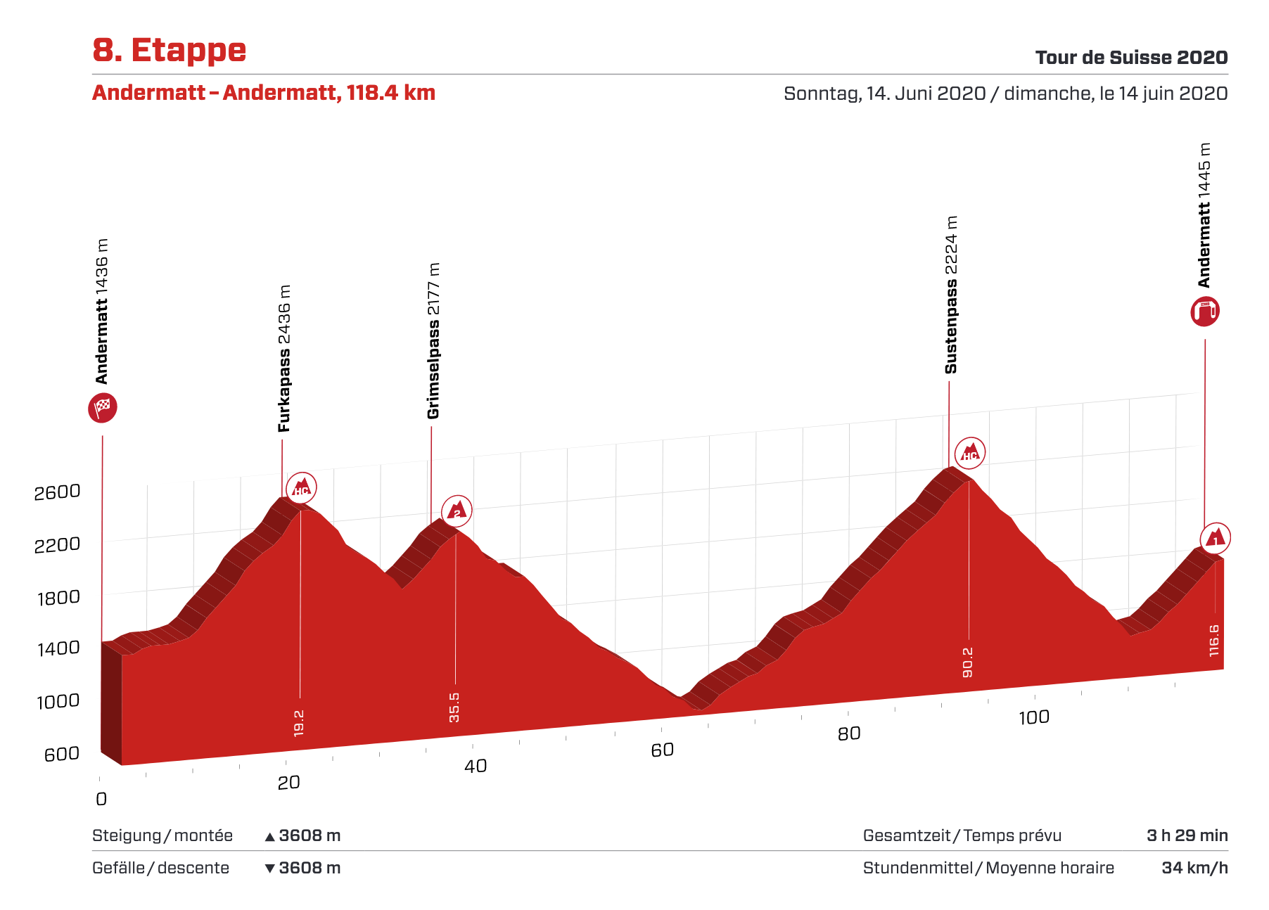 La ronda helvética promete una contrarreloj rápida y llegadas de sprint en la primera mitad, seguido de una serie de etapas de montaña más exigentes de los últimos tiempos, incluida una contrarreloj de montaña y escaladas sobre los picos triples de Furka-Grimsel-Susten.