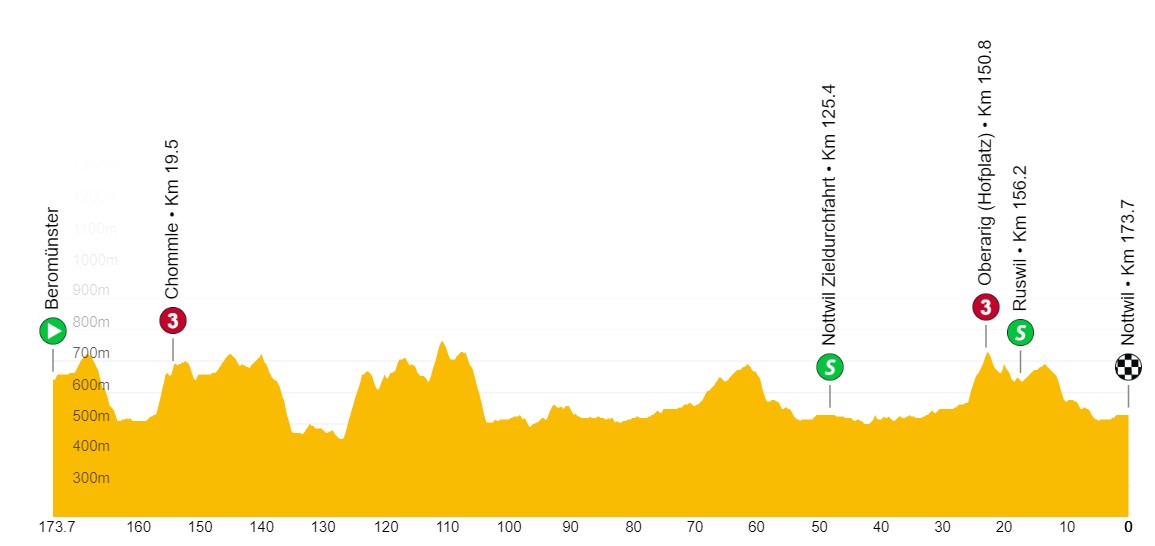 2ª: Lunes 12 junio. Beromünster  (13:09)-Nottwil (17:05), 173,7 kms