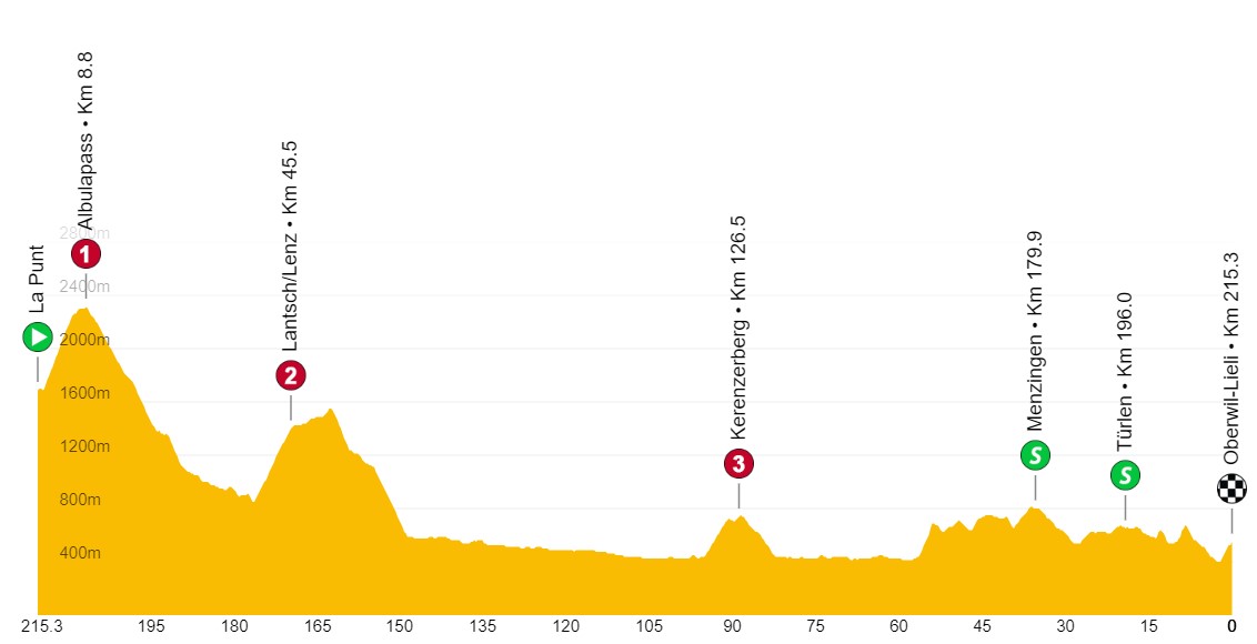 6ª: Viernes 16 junio. La Punt (10:48)-Oberwil-Lieli (16:00), 215,3 kms