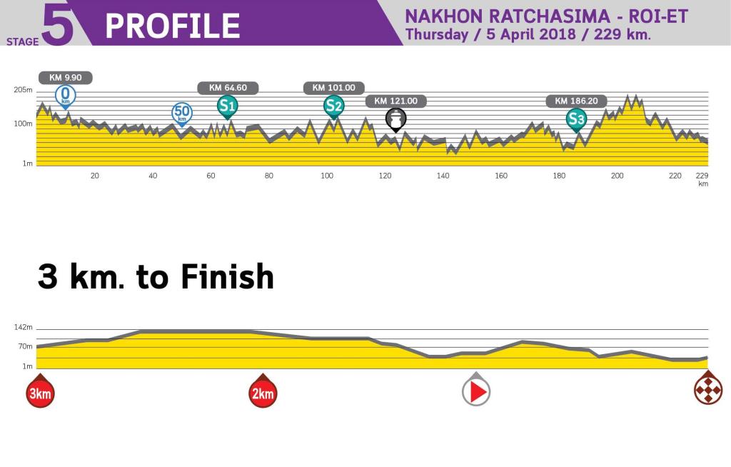 Tal y como era de esperar, la etapa, completamente llana salvo por un par de repechos sin dificultad alguna situados en los primeros kilómetros, se decidió en una llegada masiva que, lógicamente, no produjo diferencias de tiempos en una general que sigue encabezada por el australiano Benjamin Dyball (St. George), al que parece que sólo una desgracia podría apartar del triunfo final a falta de la disputa de únicamente dos etapas que, por otra parte, son completamente llanas y sin ningún lugar donde el ruso Artem Ovechkin (Terengganu) o el francés Thomas Lebas (Kinan), a 16 y 18 segundos del líder, respectivamente, puedas plantear alguna estrategia para recortar esas diferencias.