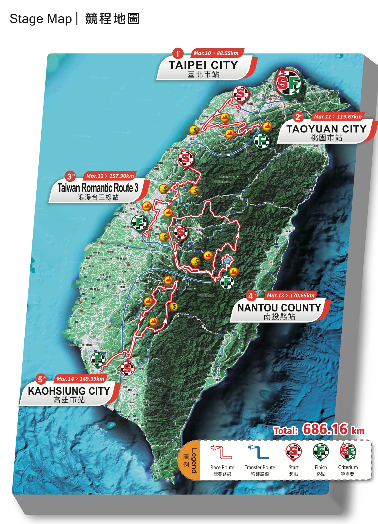 Tour Taiwán: Recorrido, perfiles de etapa y dorsales