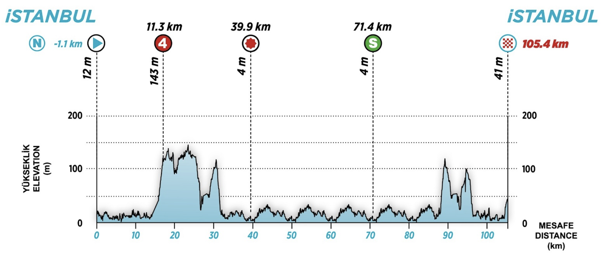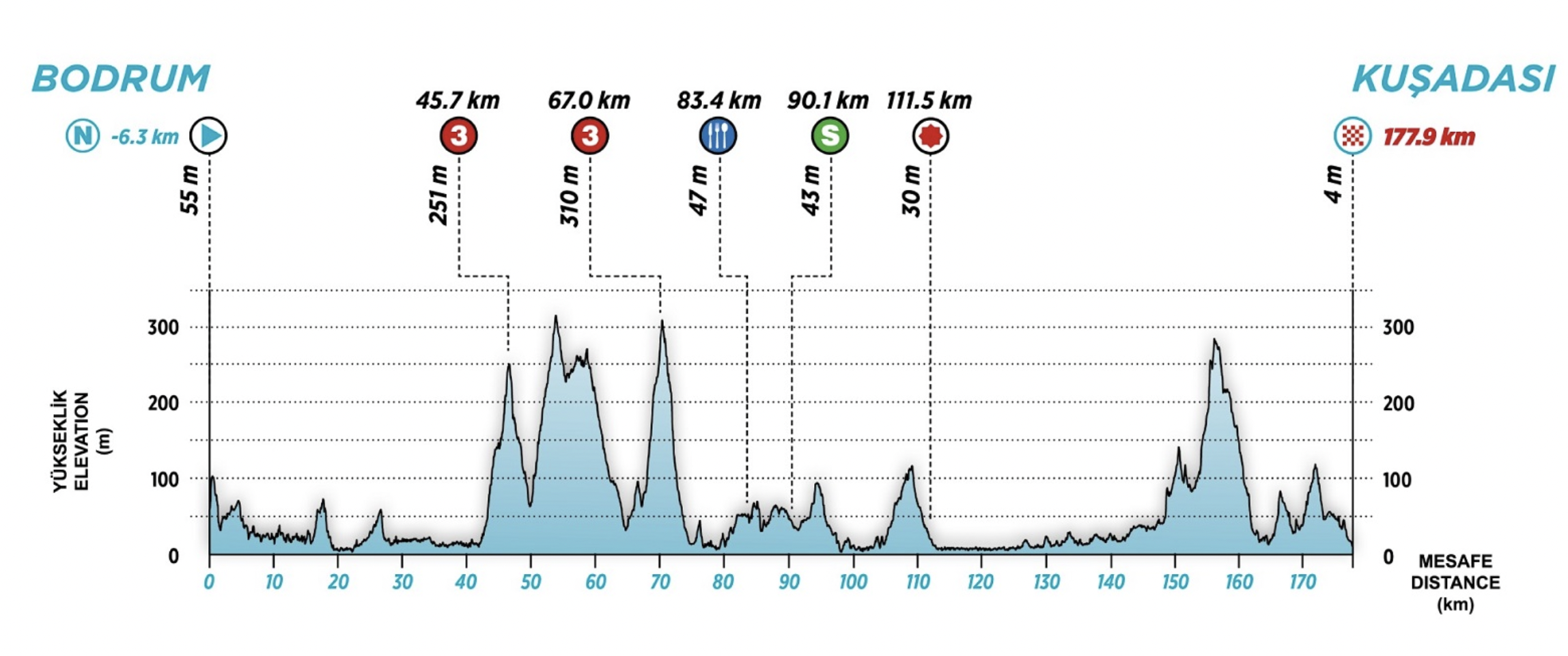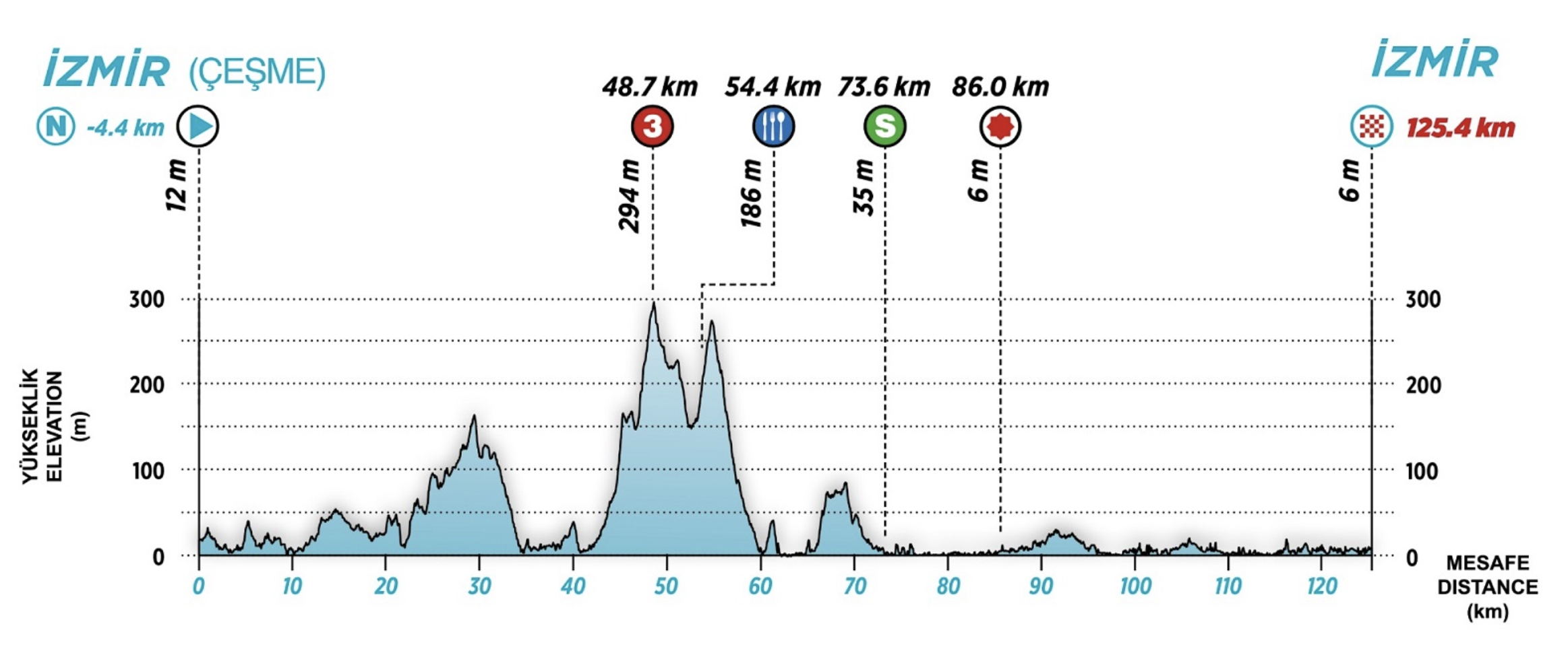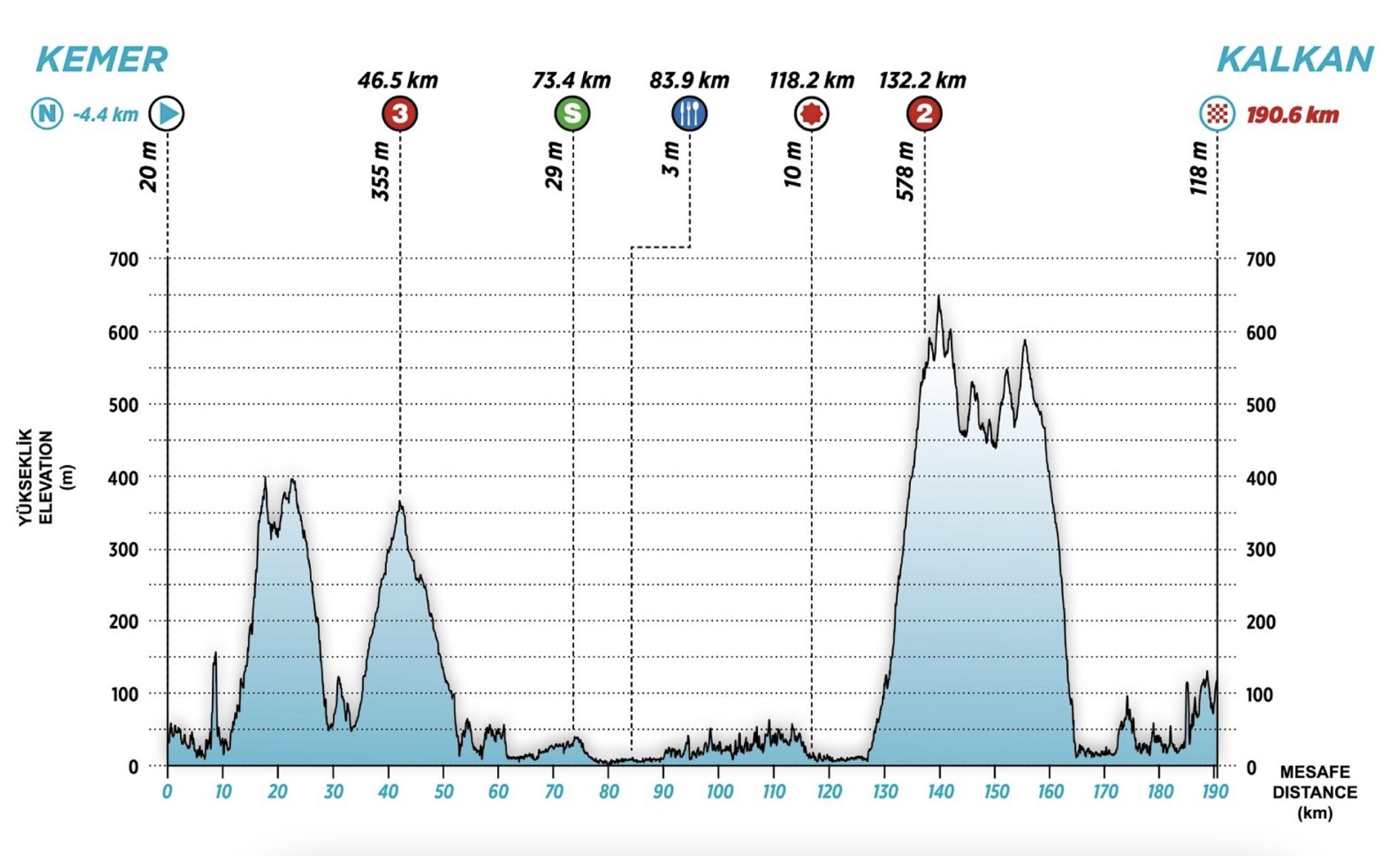 1ª: Domingo 21 abril. Antalya (9:29)-Antalya (12:15), 135 kms