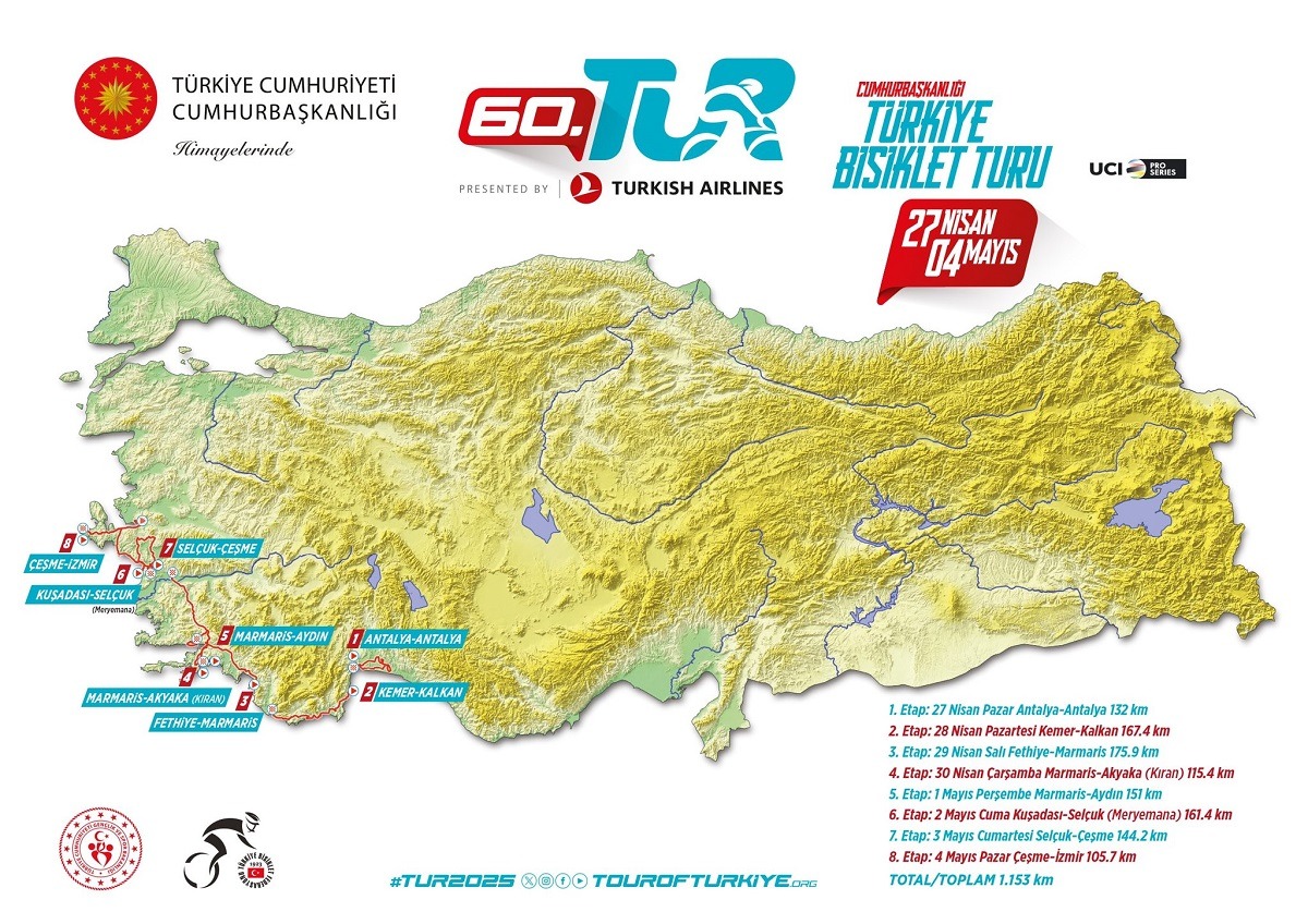 Tendrá un itinerario similar al de ediciones anteriores, ofreciendo varias oportunidades para rodadores rápidos junto a un par de días que deberían resultar decisivos para los ciclistas de la general. La ronda por etapas de categoría categoría 2.Pro comenzará en Antalya –como en 2024– y no terminará en Estambul sino en İzmir, después de ocho etapas donde, muy probablemente, podamos ver los finales en subida de Akyaka (Kıran) en la cuarta etapa y Selçuk (Meryem Ana) en la sexta etapa.
