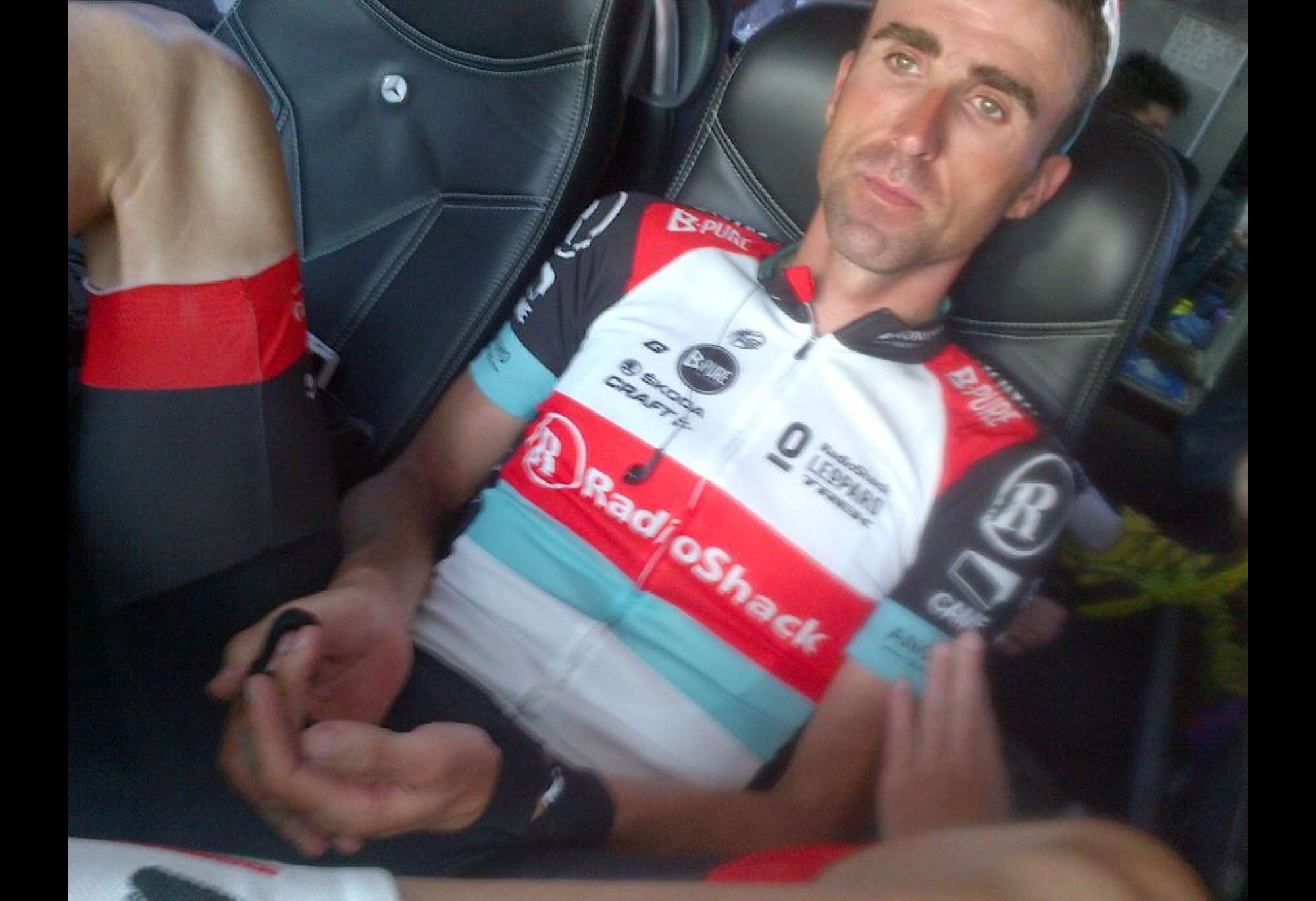 Por otra parte se confirma que el canadiense del Garmin, Ryder Hesjedal, se ha fracturado una costilla, por lo que también es seria duda para ser de la partida en la etapa de este jueves.
