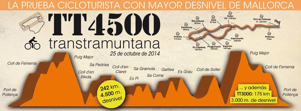 Las inscripciones todavía se mantendrán abiertas hasta el próximo 23 de octubre (ampliando el actual plazo de inscripción), por lo que esta cifra todavía podría aumentar. Los valientes «tramuntanos» atravesarán la Serra de Tramuntana de norte a sur, en un recorrido espectacular de 242 kilómetros y 12 puertos de montaña. Los que no se sientan tan preparados, pero que deseen disfrutar de este maravilloso día, pueden realizar la TT3000, con 175 kilómetros y 6 puertos de montaña.