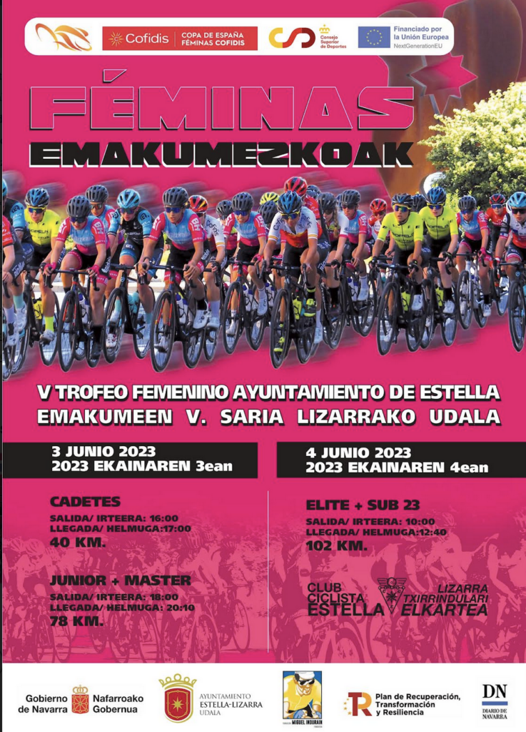 La competición arrancará el sábado 3 de junio a partir de las 16:00 horas, cuando las cadetes tomen la salida desde la céntrica calle Remontival para enfrentarse a un recorrido de 40,3 kilómetros, marcado por la escalada a Igúzquiza y pasando previamente por las poblaciones de Zubielqui, Murieta y Legaria antes de arribar sobre la meta fijada en Estella.