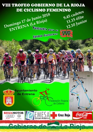 El 7º Trofeo Gobierno de La Rioja, úndecima prueba puntuable para el prestigioso Torneo Euskaldun de féminas, se disputará el próximo domingo 17 de junio, en la localidad riojana de Entrena, bajo la organización de la Fed. Riojana de Ciclismo.