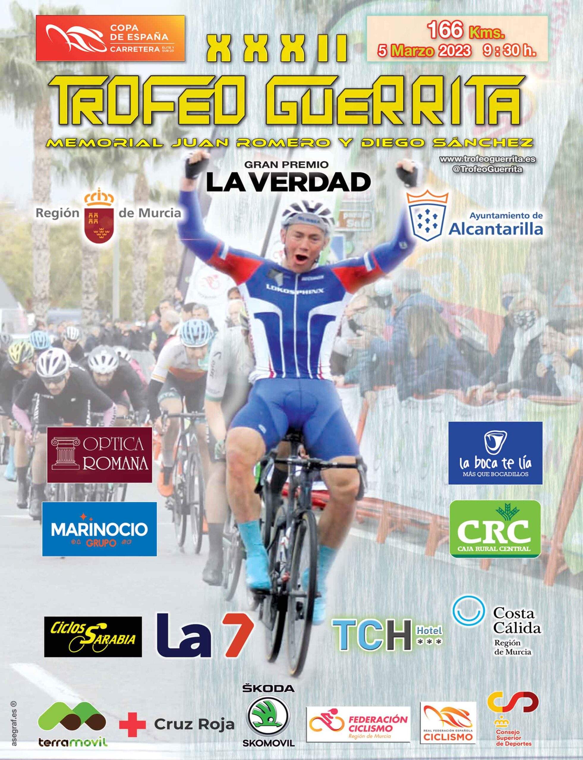El próximo domingo 5 de marzo  se celebra en la localidad murciana de Alcantarilla una nueva edición, la 32ª, del Trofeo Guerrita-Memorial Juan Romero y Diego Sánchez, segunda prueba puntuable para la Copa de España elite y sub-23 y organizada por la Peña Ciclista Guerrita. La carrera saldrá a las 9:30 horas de la Calle Mayor, junto al Jardín de la Constitución, y la llegada está prevista al mismo lugar alrededor de las 13:25